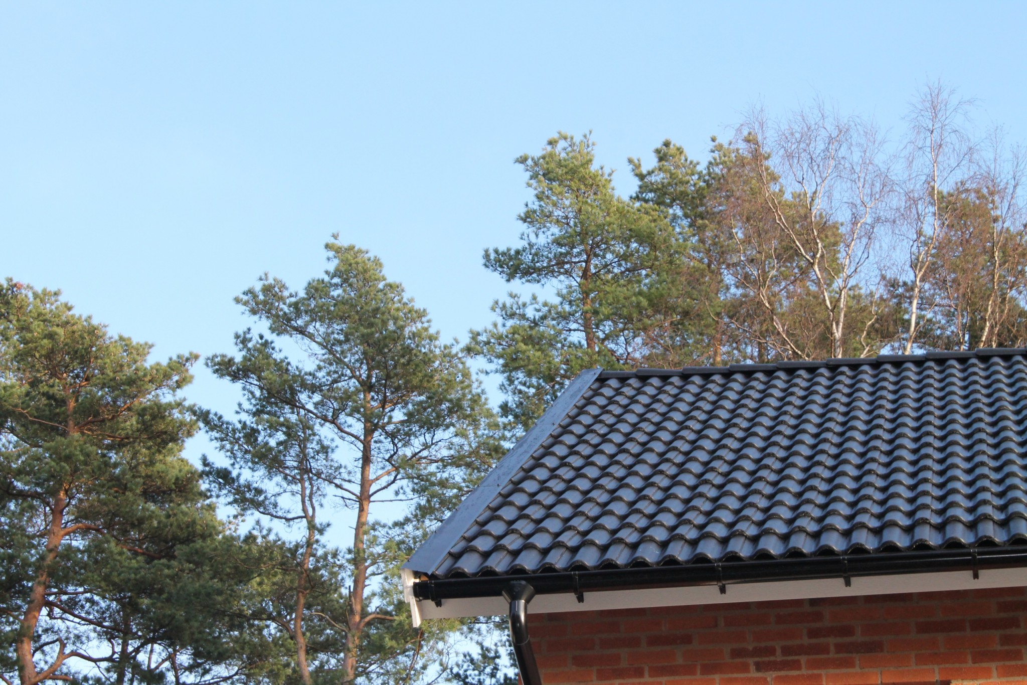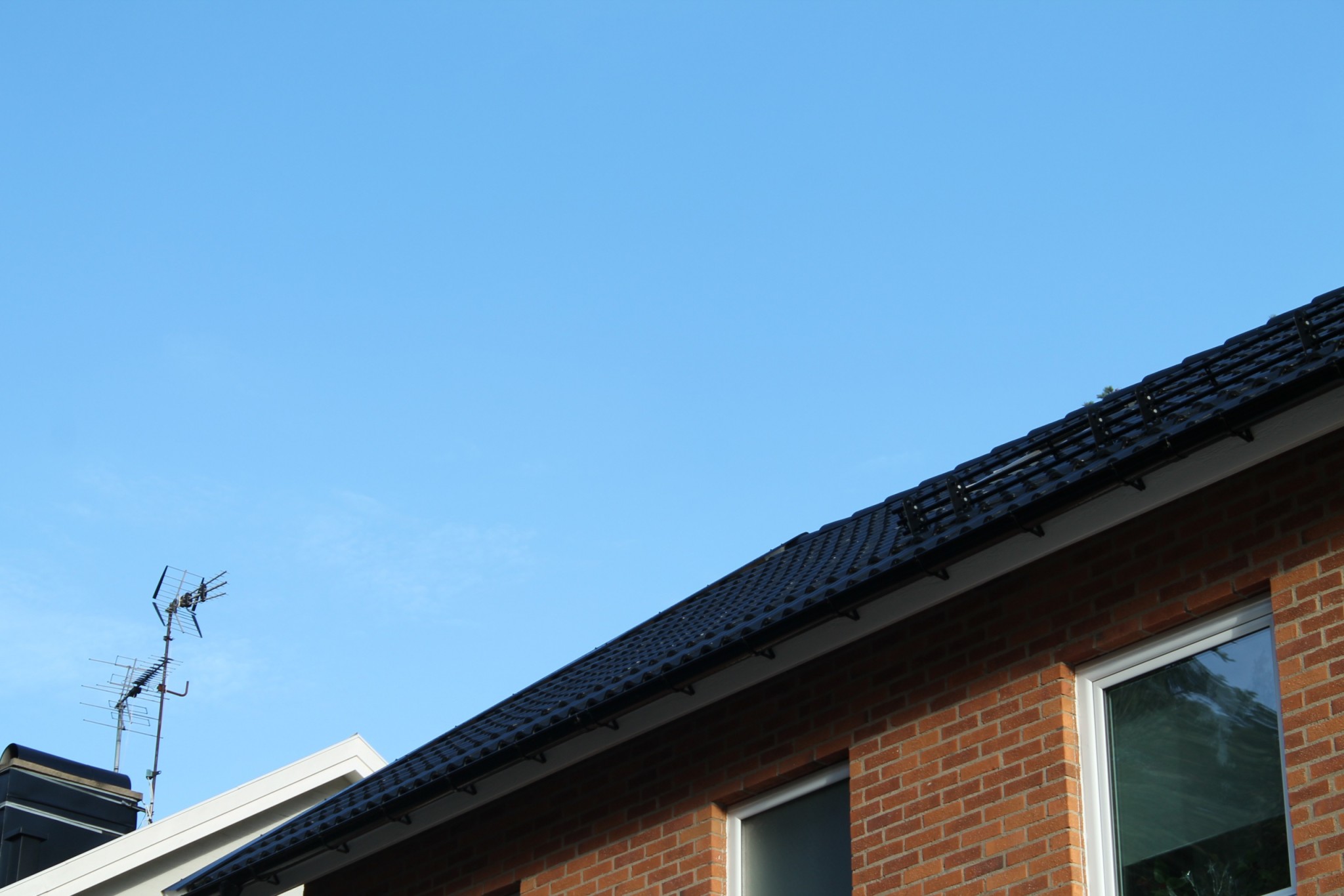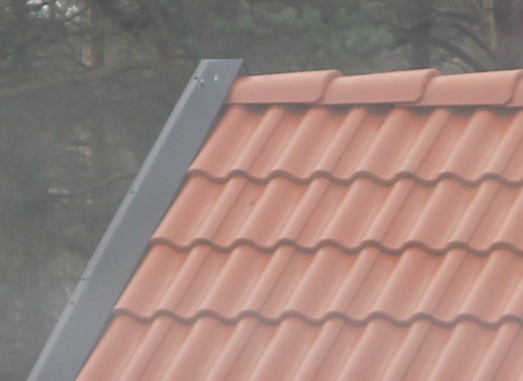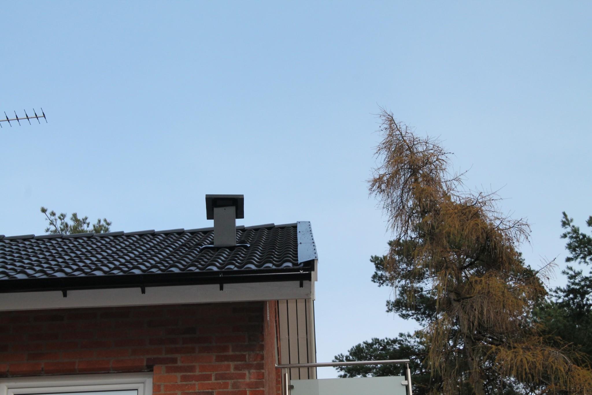 Tog ett kort på grannens tak. Grannen har samma tak, samma betongpannor och hans ser ut så här.