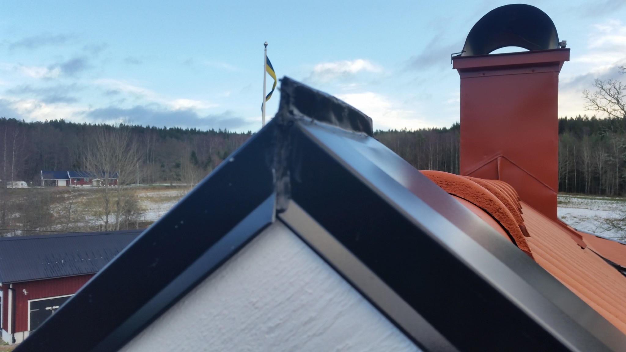 Denna lösningen är jag inte förtjust i.Malisan74 skrev:Tog ett kort på grannens tak. Grannen har samma tak, samma betongpannor och hans ser ut så här. [bild] Som det ser ut på plåten så har han också visk 110. På bilden ser det ut som han gått med en plåt ända upp till nockpannan, dvs nedre del av nockpanna, och sedan överlappat med en bit till över nockpannan. Det ända han gjort är böjt plåten.