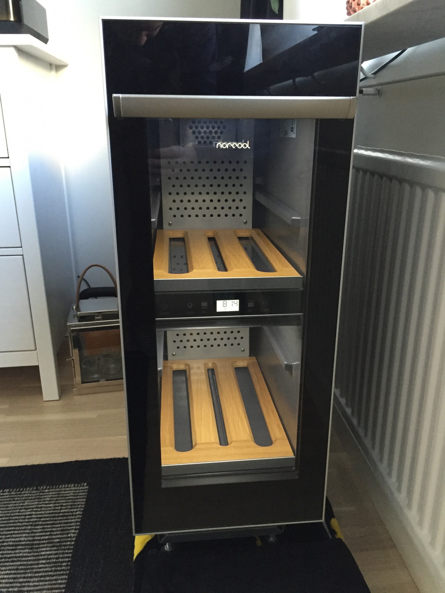 Hej! Har en sån kyl som jag inte får igång temperaturen. När jag trycker ner på önskad temperatur så går den ändå upp till 30-32 grader och kyler inte ner… har du haft erfarenhet av det med din?