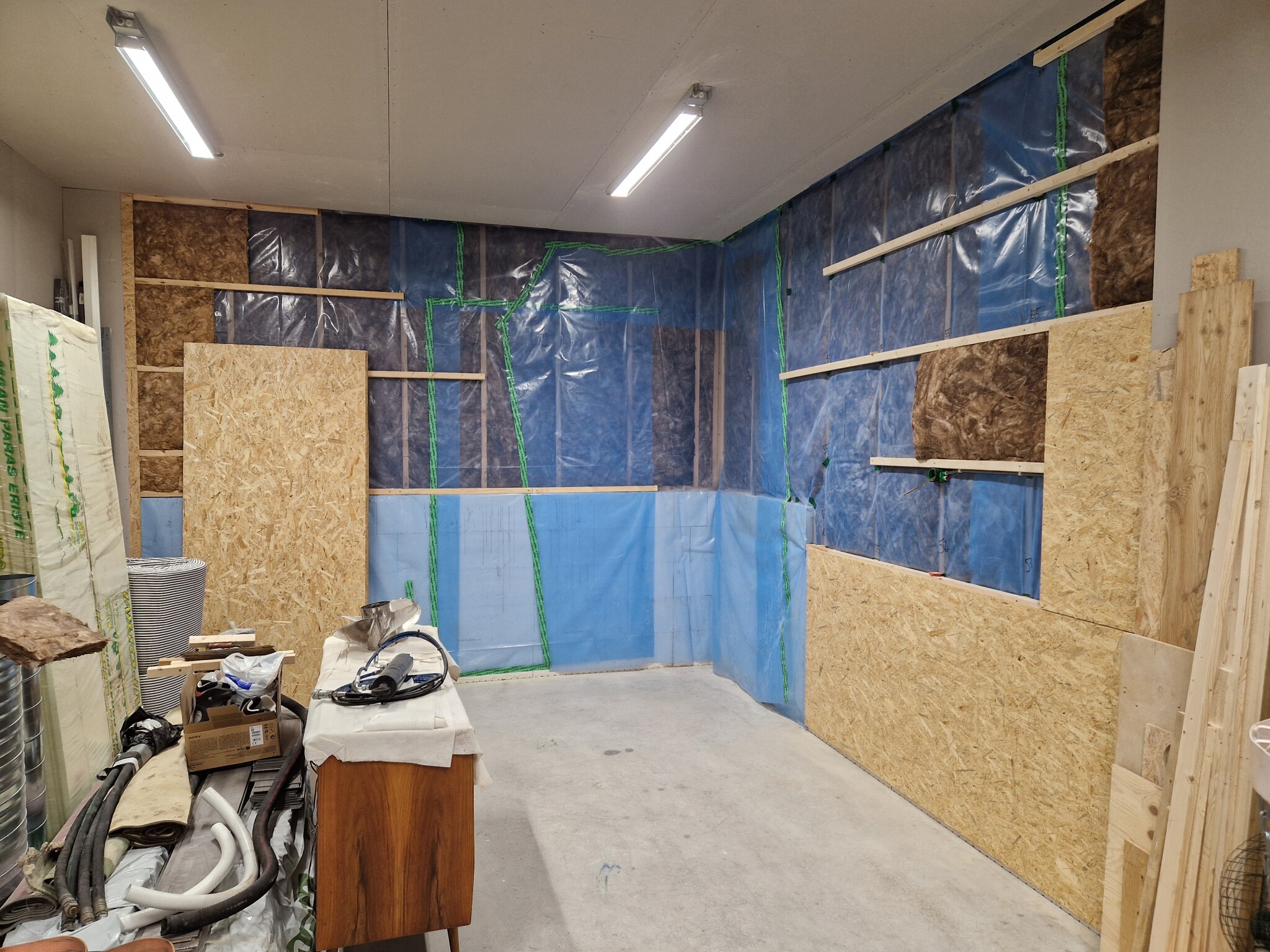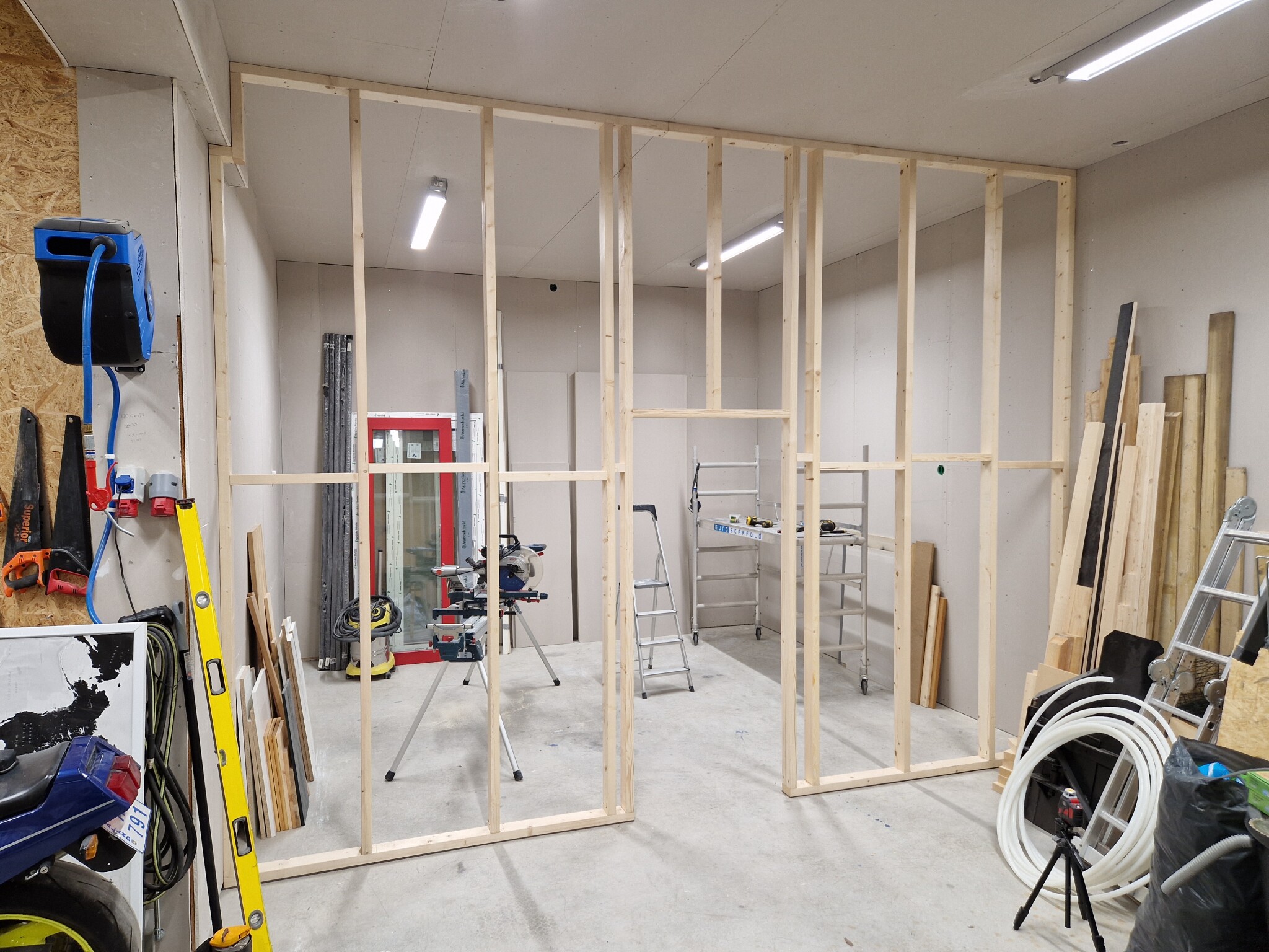 När det var färdigt började jag regla upp skiljeväggen för gymmet: