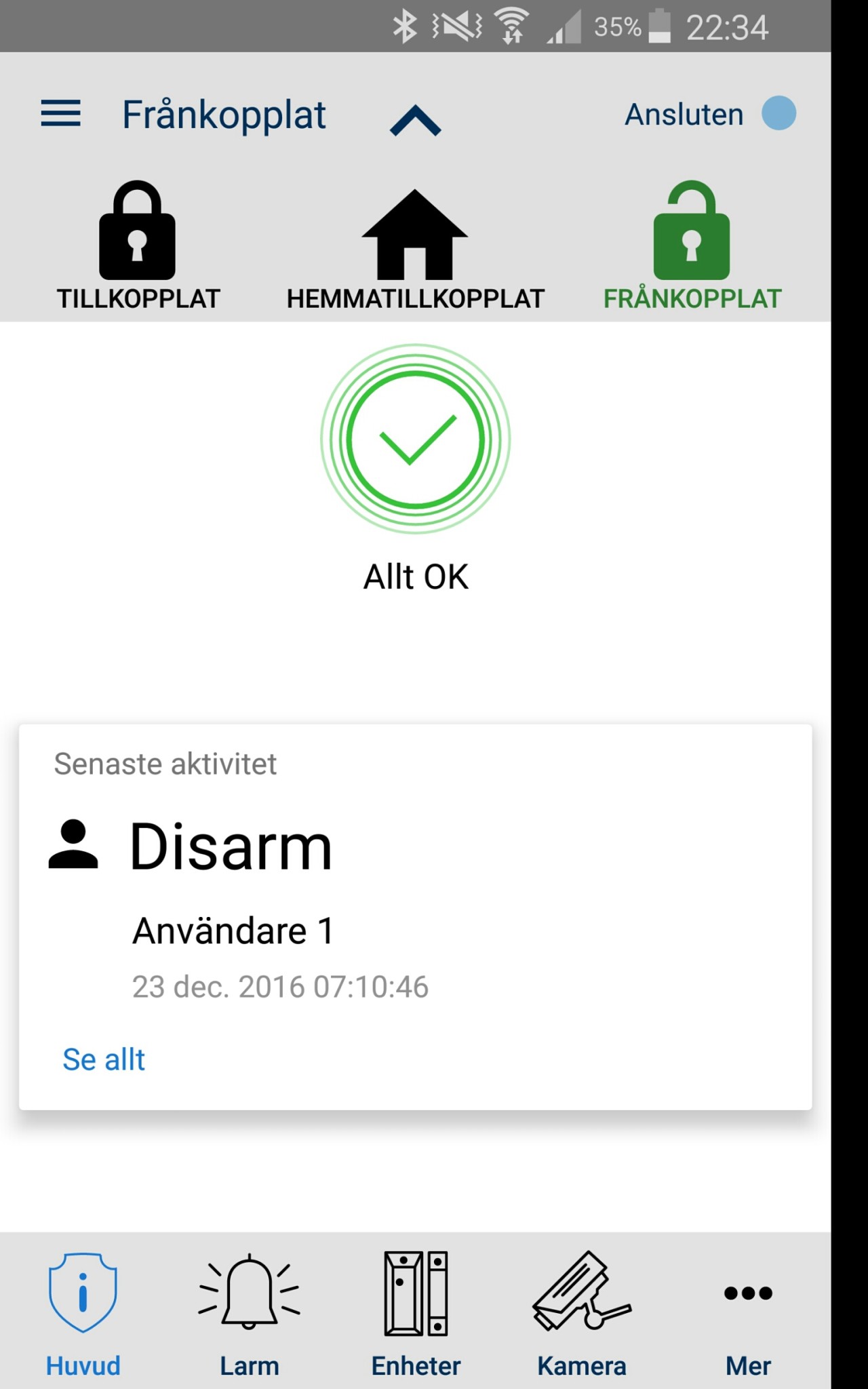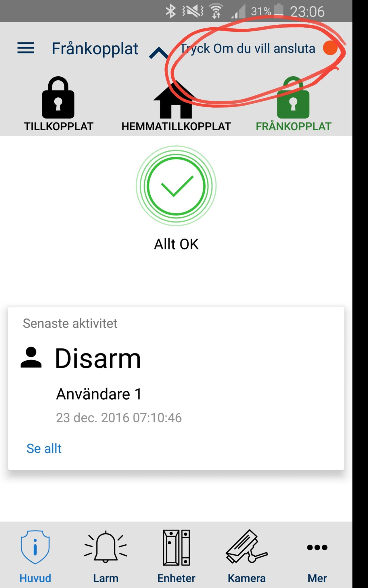 boltis skrev:Jag använder visonic-appen och den fungerar väl helt ok. Tar en liten stund innan den ansluter dock. Har du provat att skicka kommandot att ansluta? Jag vet även att säkra larm som jag har behövde aktivera funktionen för appen för att det skulle fungera ordentligt. Men kan du logga in så pass som du gjort borde det ju funka...