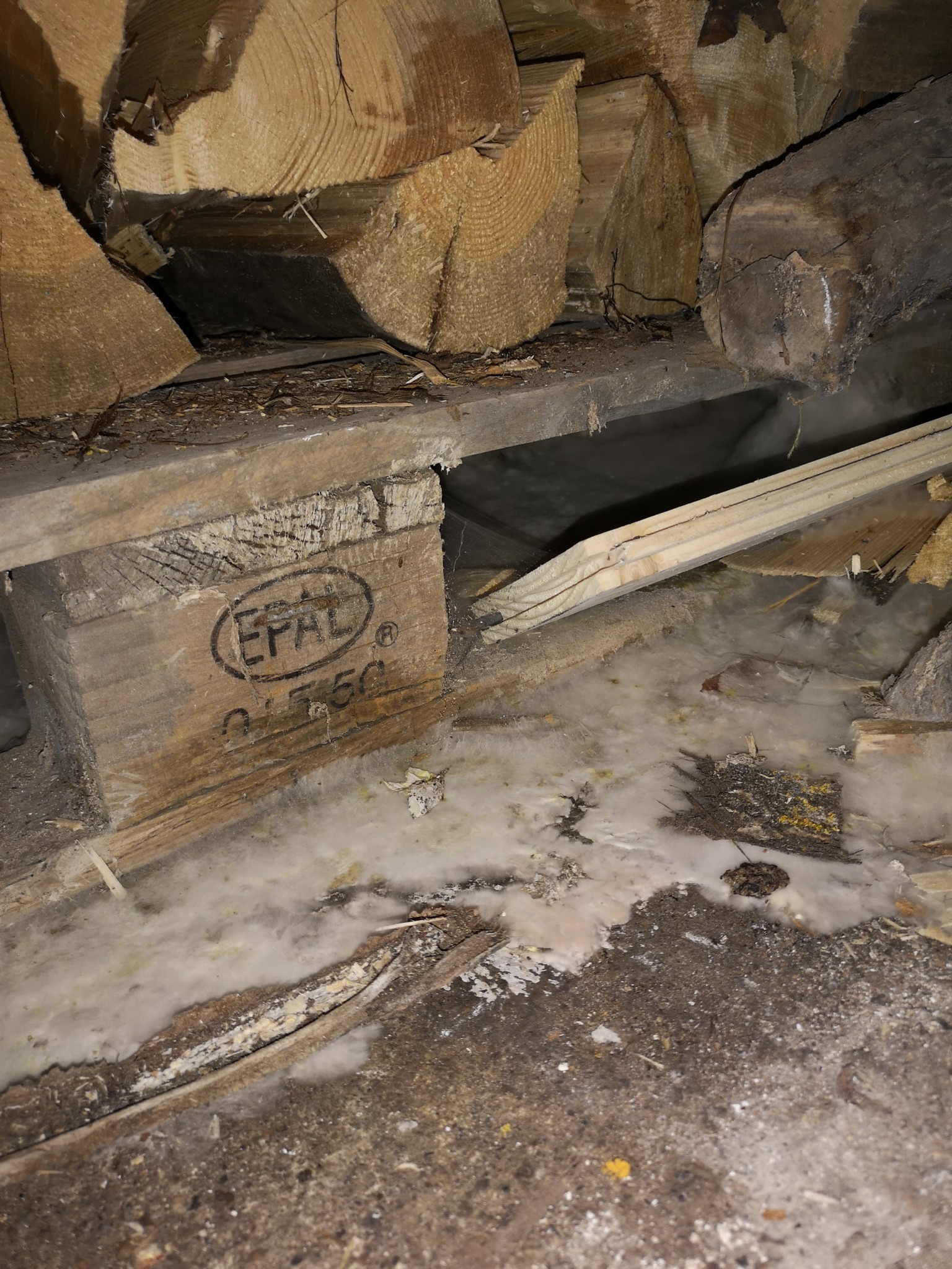 Vi har ett vedbo I källaren (fuktigt) och har precis upptäckt detta. Kan någon hjälpa till att identifiera vad det kan vara?