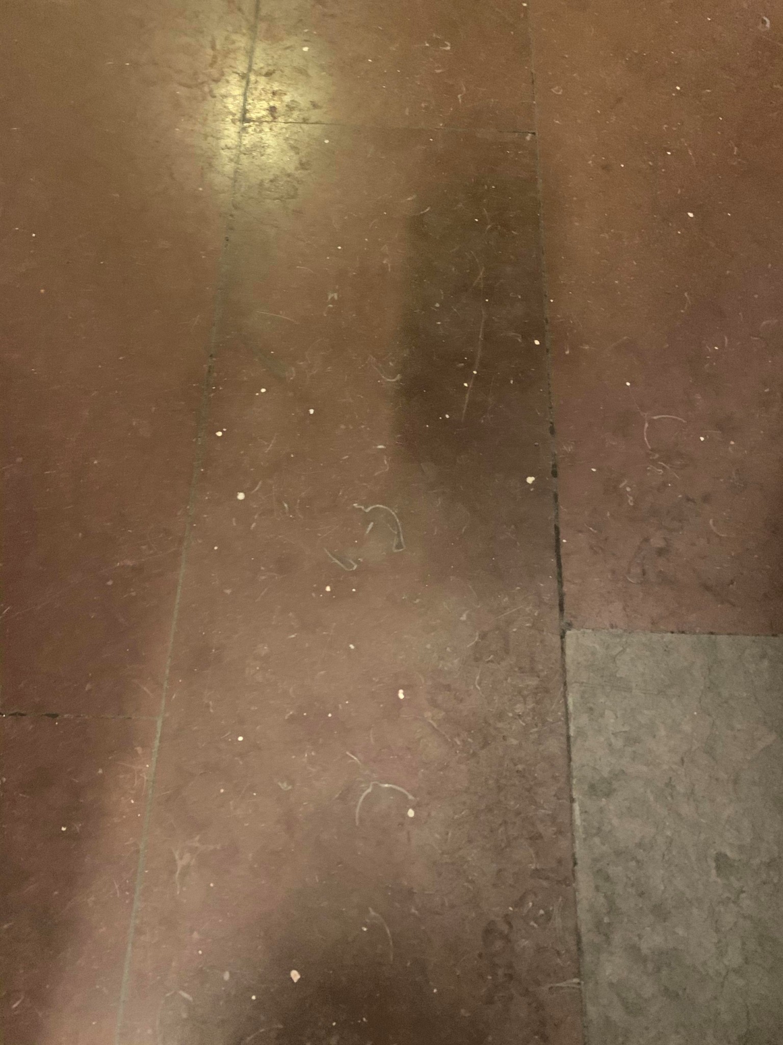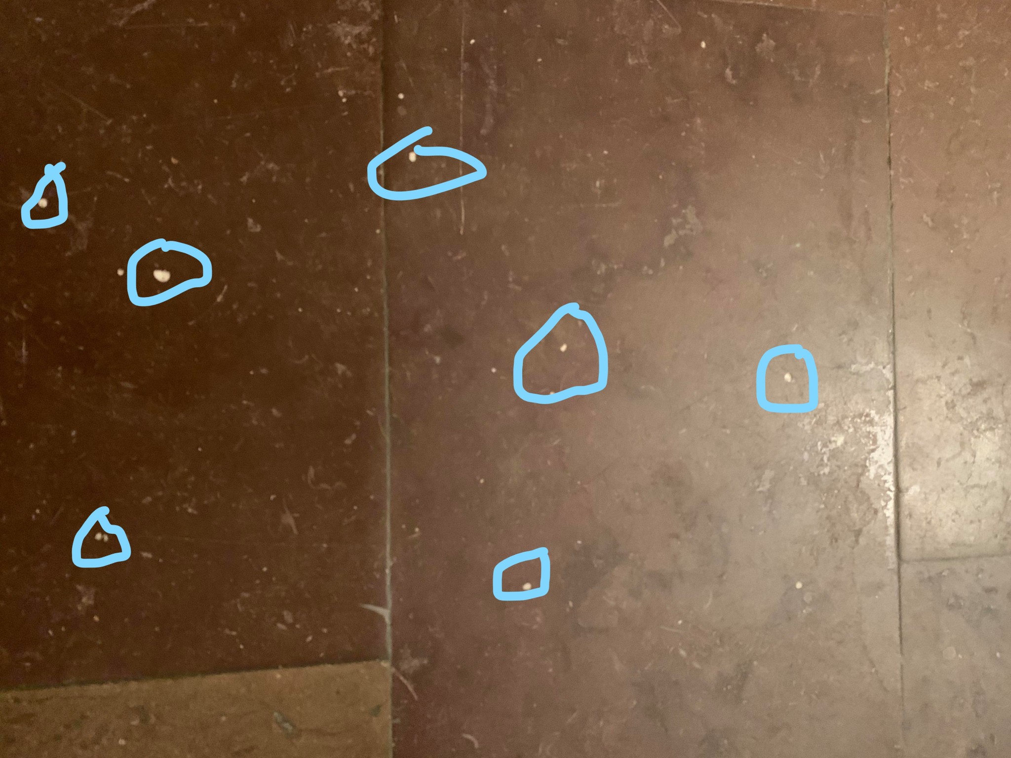 Om du menar de vita prickarna så fanns de ju redan i somras: https://www.byggahus.se/forum/threads/stengolv-med-maerken-hjaelp.347367/