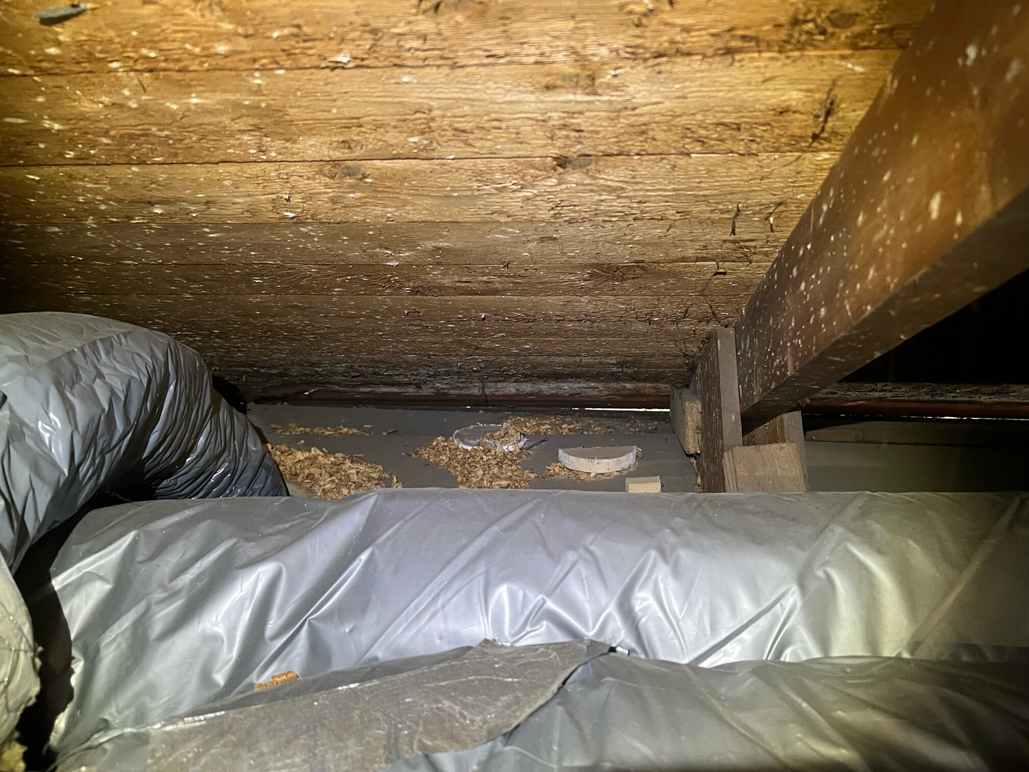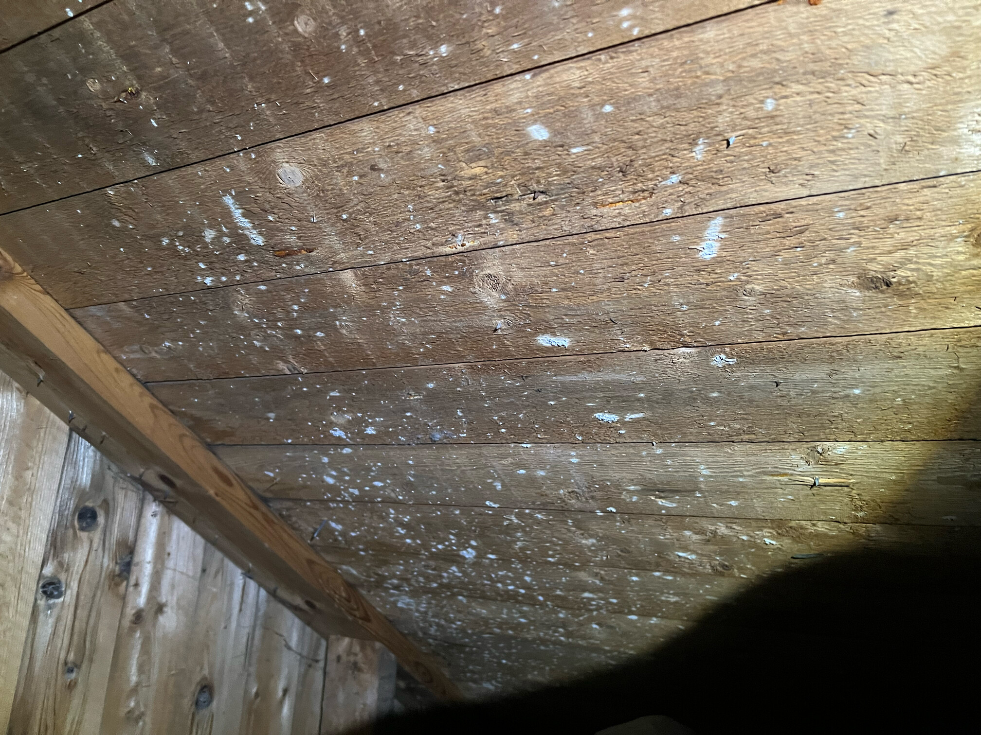 Hej! Jag bor i ett hus från 1964 som jag flyttade in i förra sommaren. Nu har jag upptäckt lite vita prickar, ser nästan ut som fågelskit/stänk i det nordöstra hörnet av vinden. Tycker inte det ser ut som vitmögel brukar göra, som mer ligger som en vit hinna. Detta är mer ett kraftigt stänk av vitt puder eller liknande. Läst på lite andra trådar att någon hade råttgift på vinden.