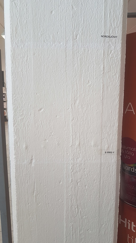 Utomhus skulle jag säga att den 0502 är vanligast standard och det är kanske med all rätt då den neutrala blir väääldigt vit ute, i alla fall på stora ytor. Utomhus blandar vi 0500 och 0502 50/50 det passade vår smak bäst.