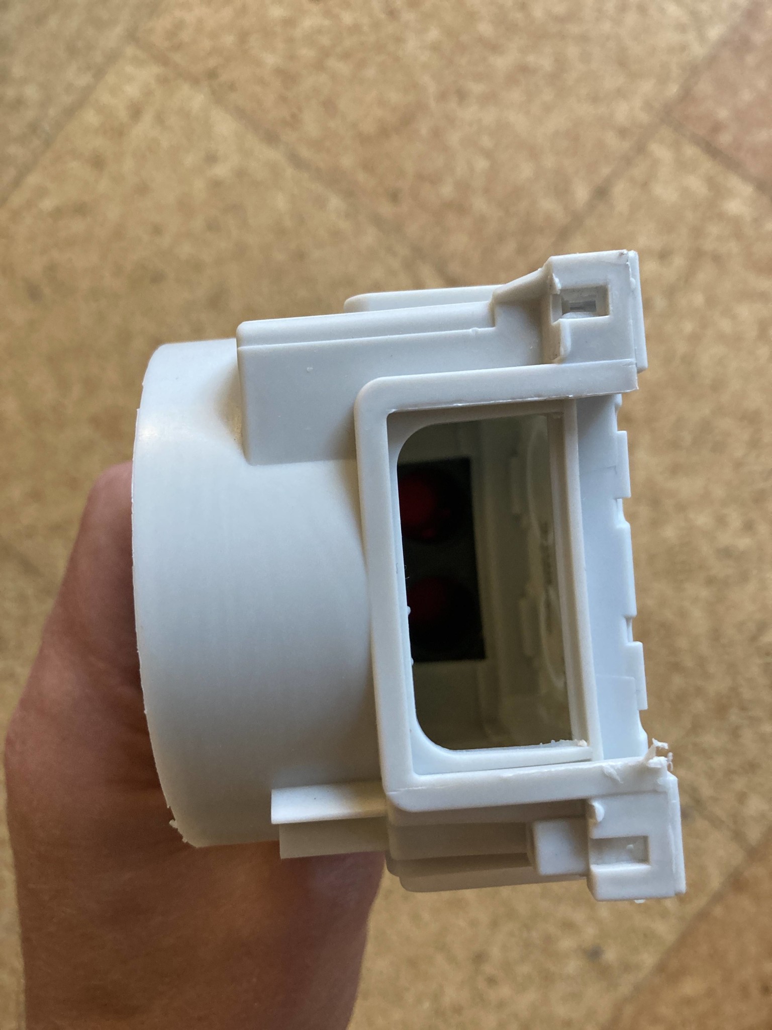 Till frågan, på ett ställe vill jag sätta två dosor bredvid varandra horisontellt, med öppning mellan dessa. Som jag har förstått det så ska det gå att ”knacka” loss plastbiten på sidan av en dosa, tex för att sätta studsar åt alla fyra håll eller koppla ihop dosor. Det är den delen på bilden jag vill ha bort.
