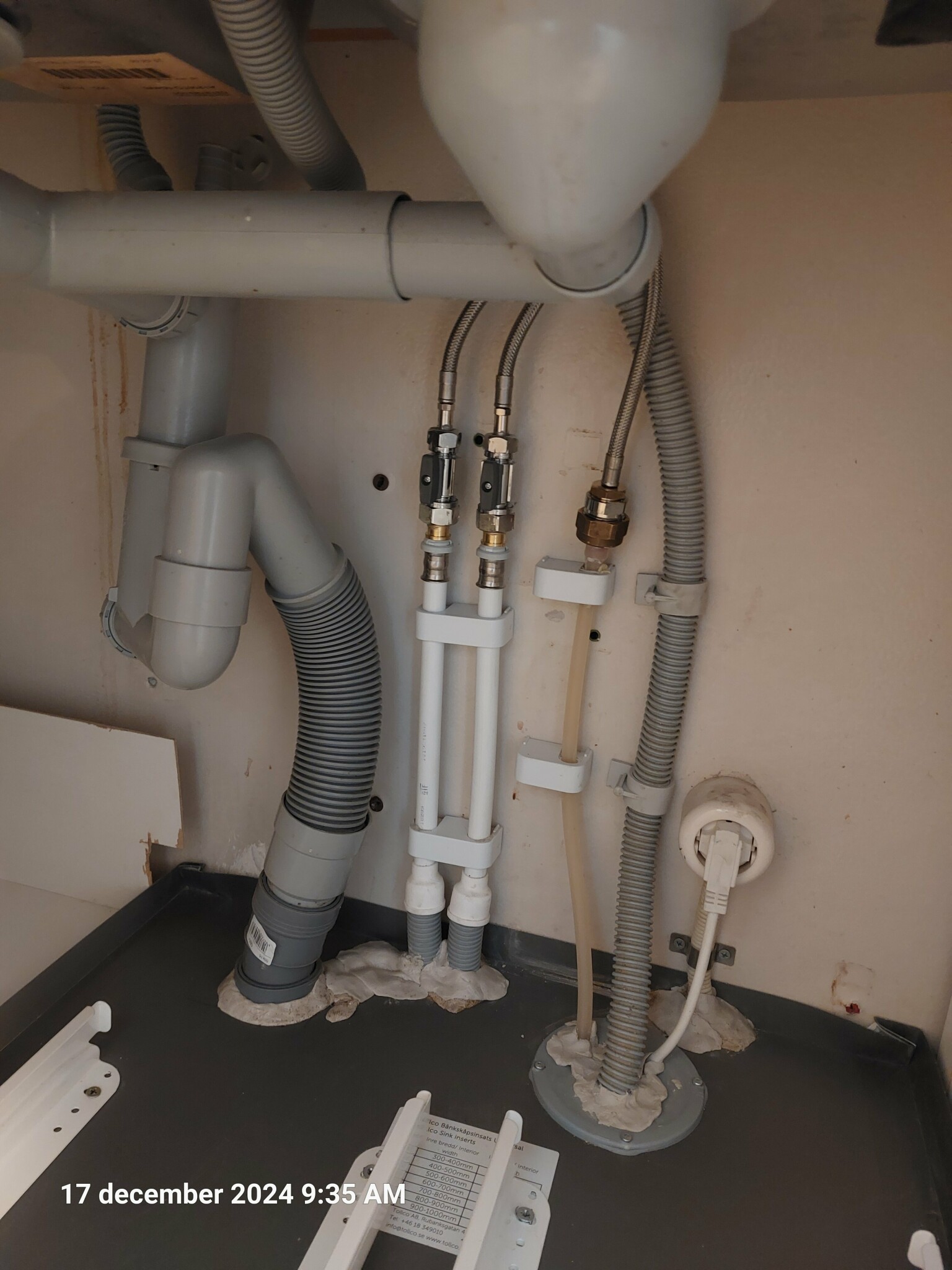 Efter stambyte i BRF ser det ut så här under diskbänken.