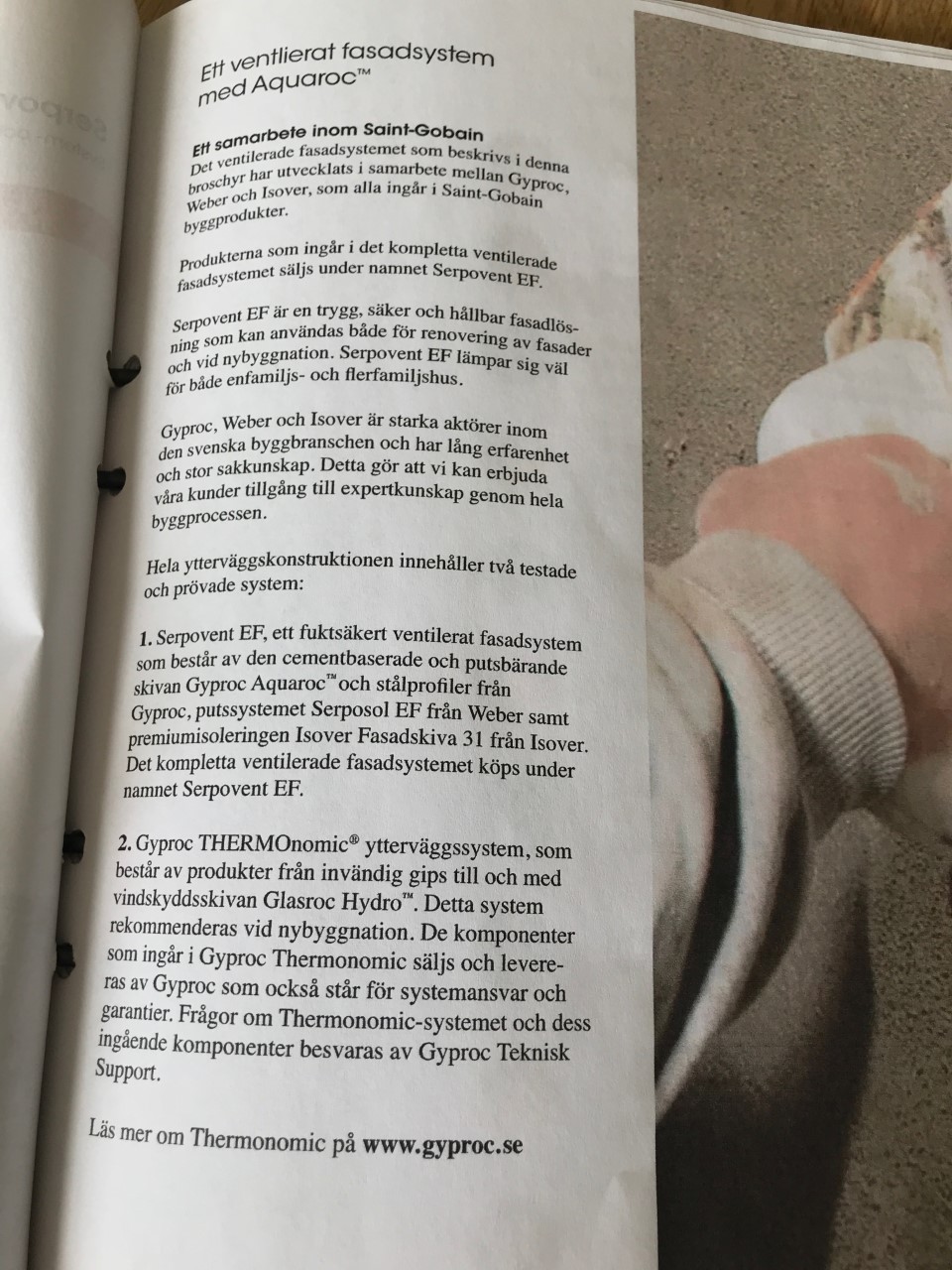 Jag är spekulant på ett hus från 2007 som ursprungligen uppförts med enstegstätad putsfasad. Fasaden har bytts ut till en ventilerad fasad med Weber Serpovent EF 2015 (se bild) och godkändes efteråt av en fristående besiktningsman. Bör jag vara orolig?