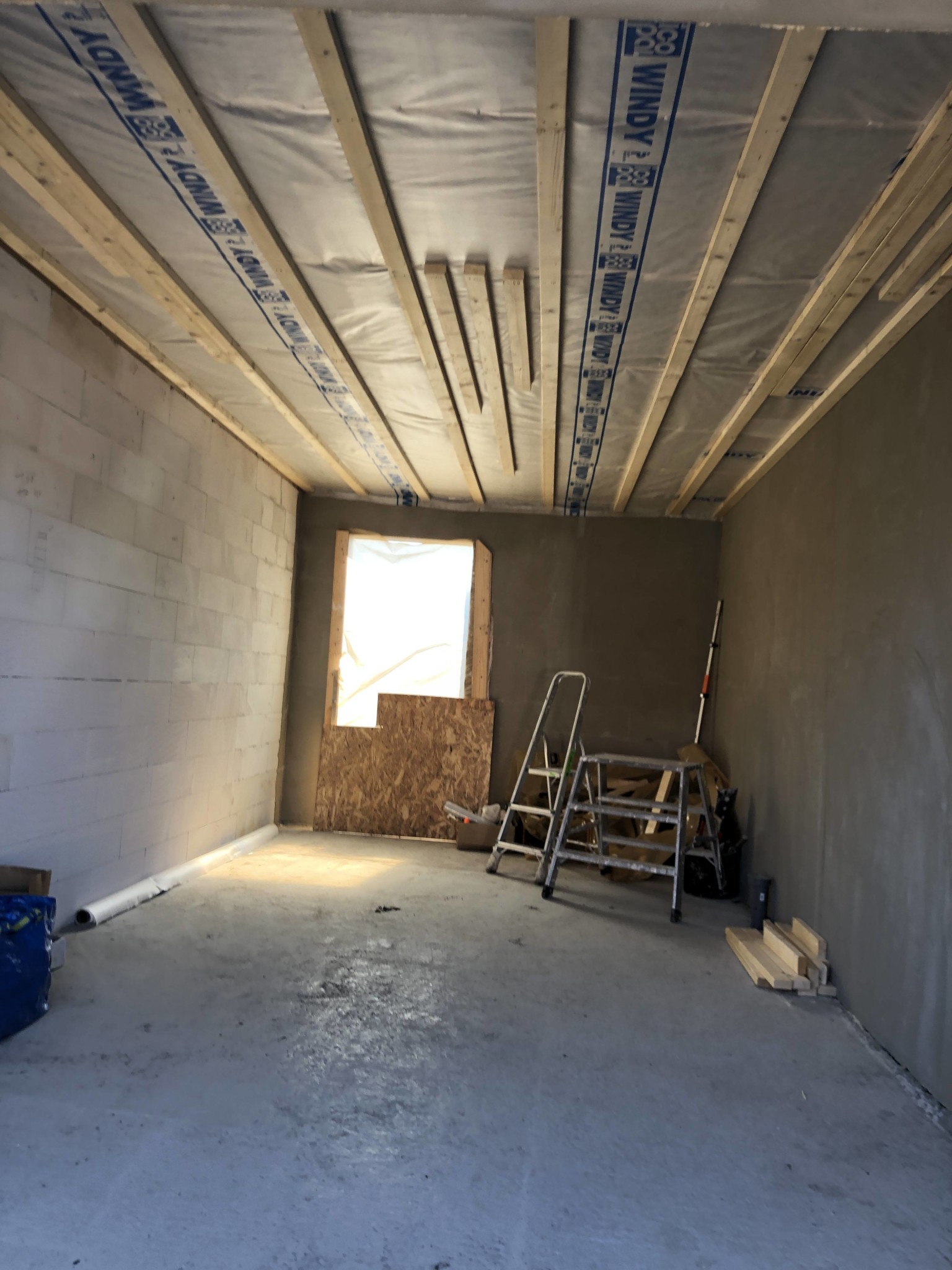 Har ni satt dit vindskydd istället för ångspärr i badrummet, eller hur löser ni det?