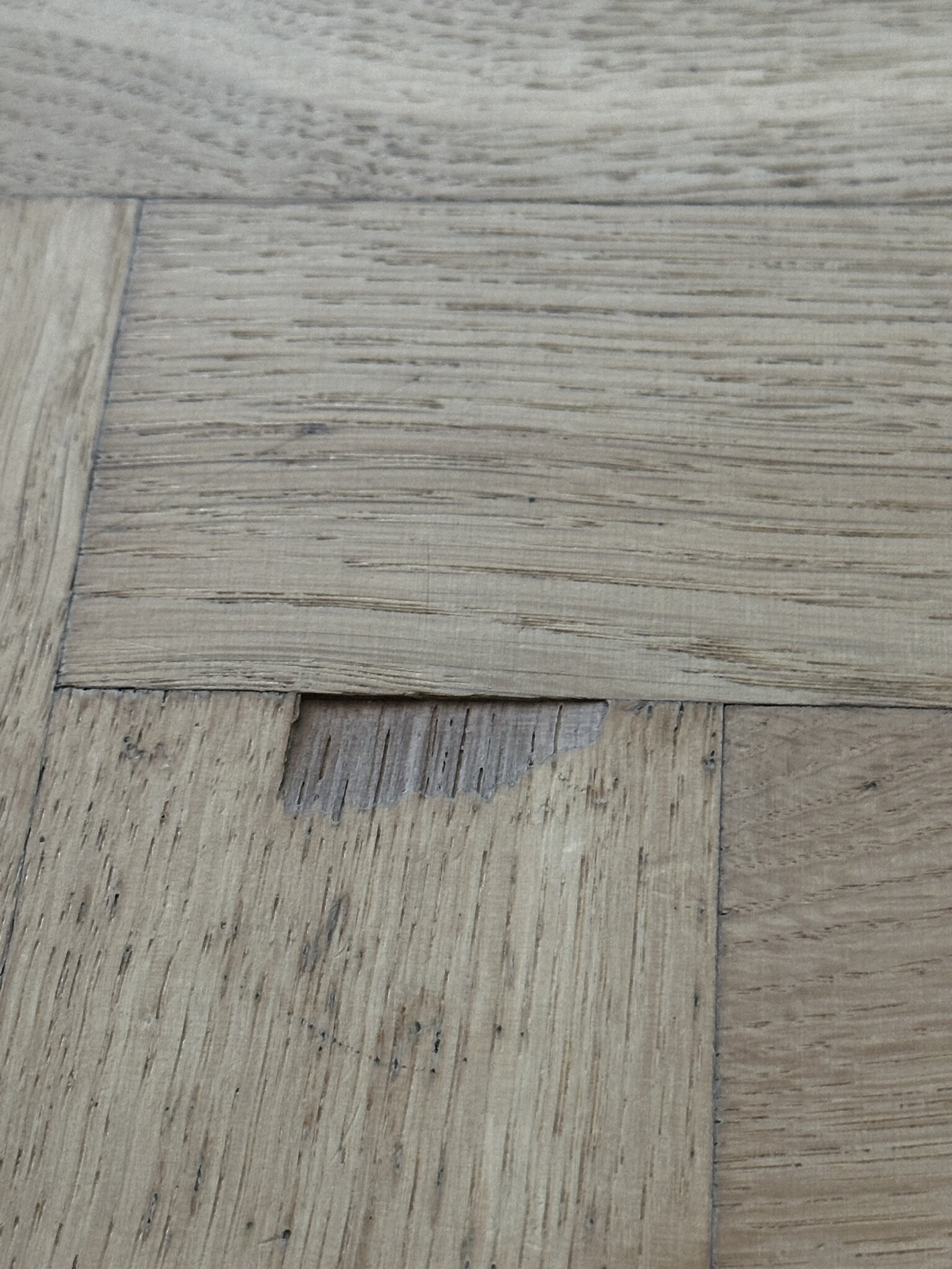 Vi har ett gammalt fiskbensparkett i vardagsrummet där en flisa försvunnit innan vi flyttade hit.