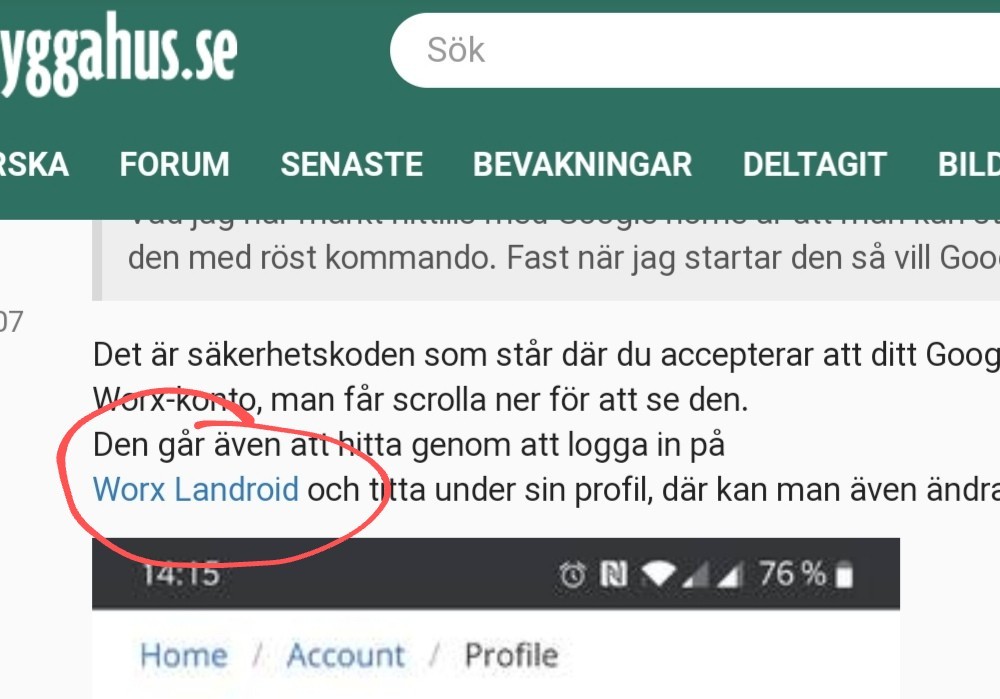 Det är säkerhetskoden som står där du accepterar att ditt Googlekonto ansluter till ditt Worx-konto, man får scrolla ner för att se den.JohannesR skrev: