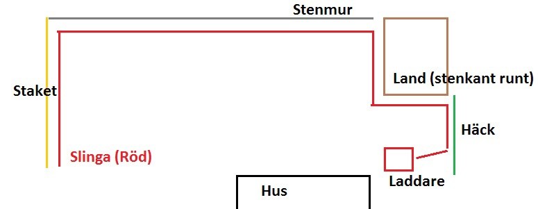 Kommer mest troligt inta att fungera. Den är mycket känslig då den följer slingan på väg hem. Även din dragning av slingan skapar problem. https://www.byggahus.se/forum/threads/worx-landroid.193833/page-88#post-1551099 finns lite mer info om framförallt innerhörn. Avståndet kan krympas från 35 ner till 20 -25 cm. Här får man prova sig fram.Lewdis skrev:En liten tanke som slog mig. Första delen av min tomt har fasta föremål längs kanterna. Hade det fungerar att lägga slingan kloss an dessa. Då skulle klipparen bara studsa vidare här tills den hittar kabel längre fram och sedan vandra hem. Jag skulle få klippt så nära kanten som det bara går.