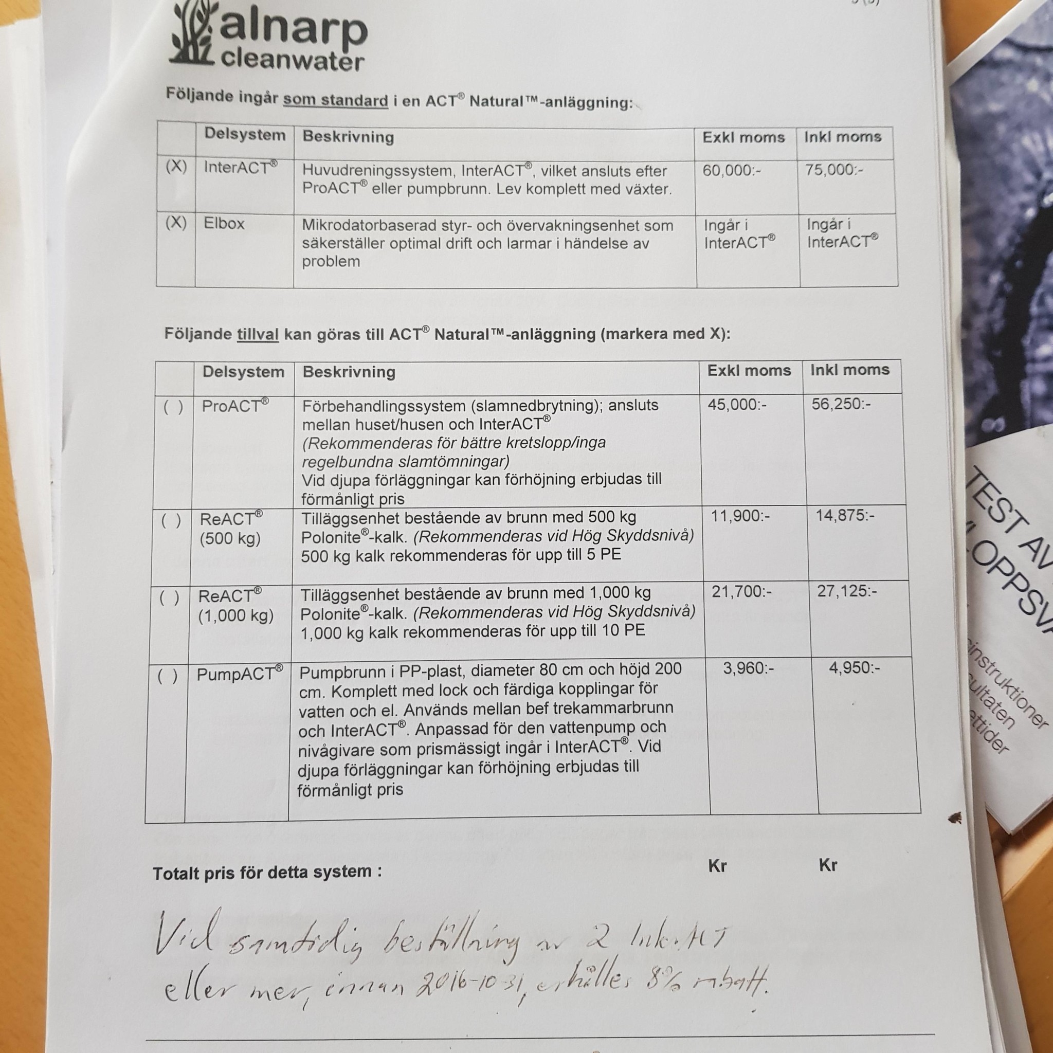 Det finns flera, här är en bra genomgång men några år på nacken.G gredd skrev:Intressant lösning och kanske prisvärd på sikt om man inte behöver serviceavtal och klarar sig med slamtömning vart 10 år. Frågan är hur man ska övertyga sin okunniga miljötant att det här fungerar som bara vågar godkänna biovac och baga, för då behöver hon inte lära sig något nytt. Finns det fler bioreningsverk som detta på marknaden?