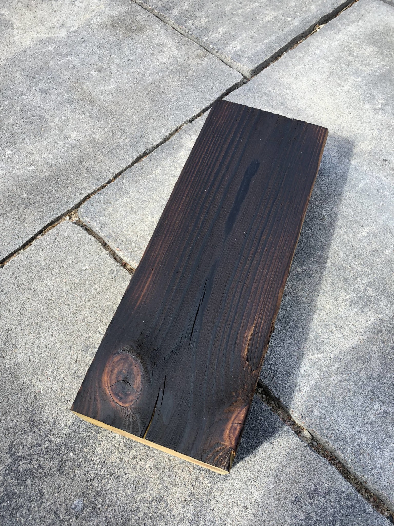Lite det som kallas för shousugi-ban men egentligen heter typ Yakisugi, som japanerna gör på panel. Jag körde inte lika hårt, men det blir sjysst satinerad yta på köper.