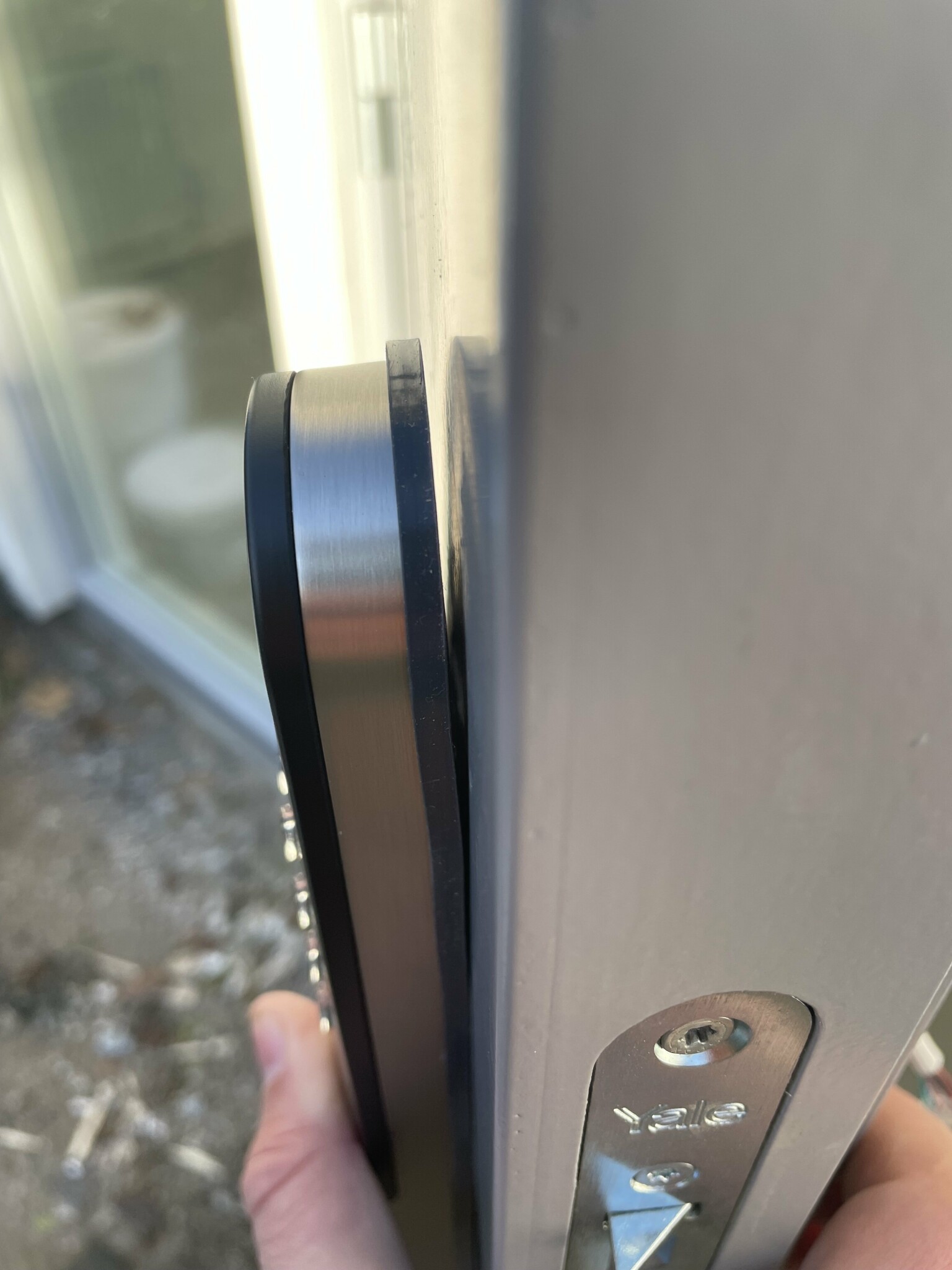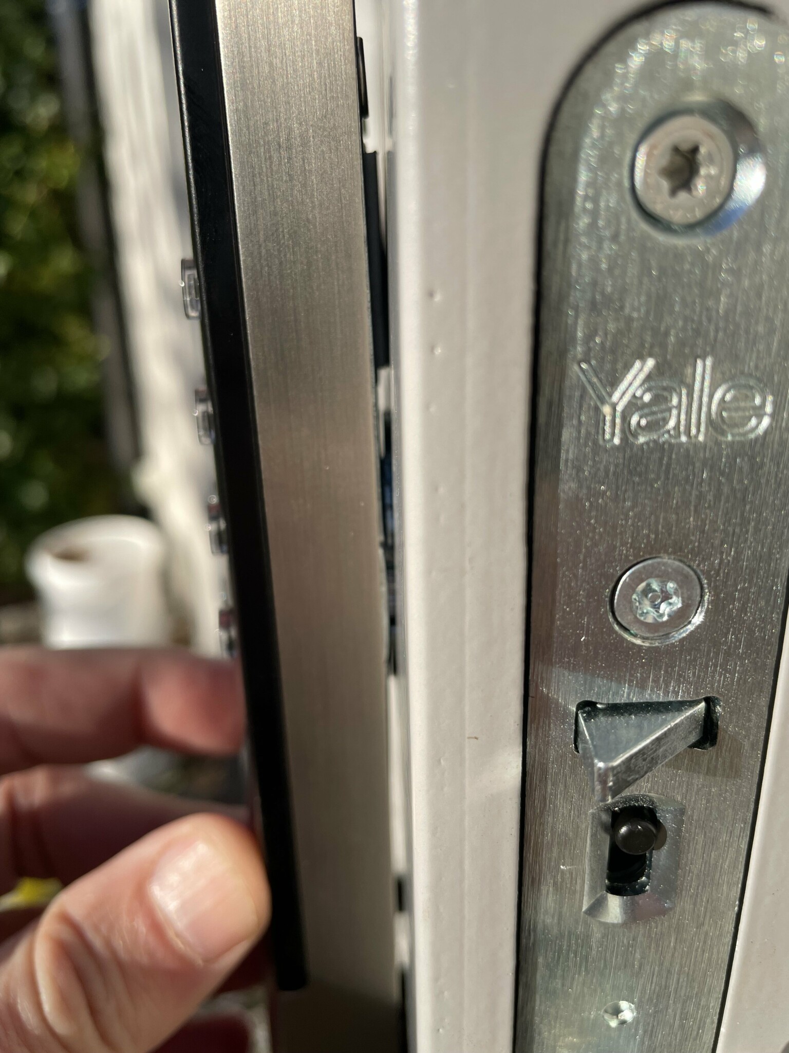 delen som sitter på utsidan på yale doorman l3s glappar ganska rejältmot dörren och det kommer inte kunna spännas in.