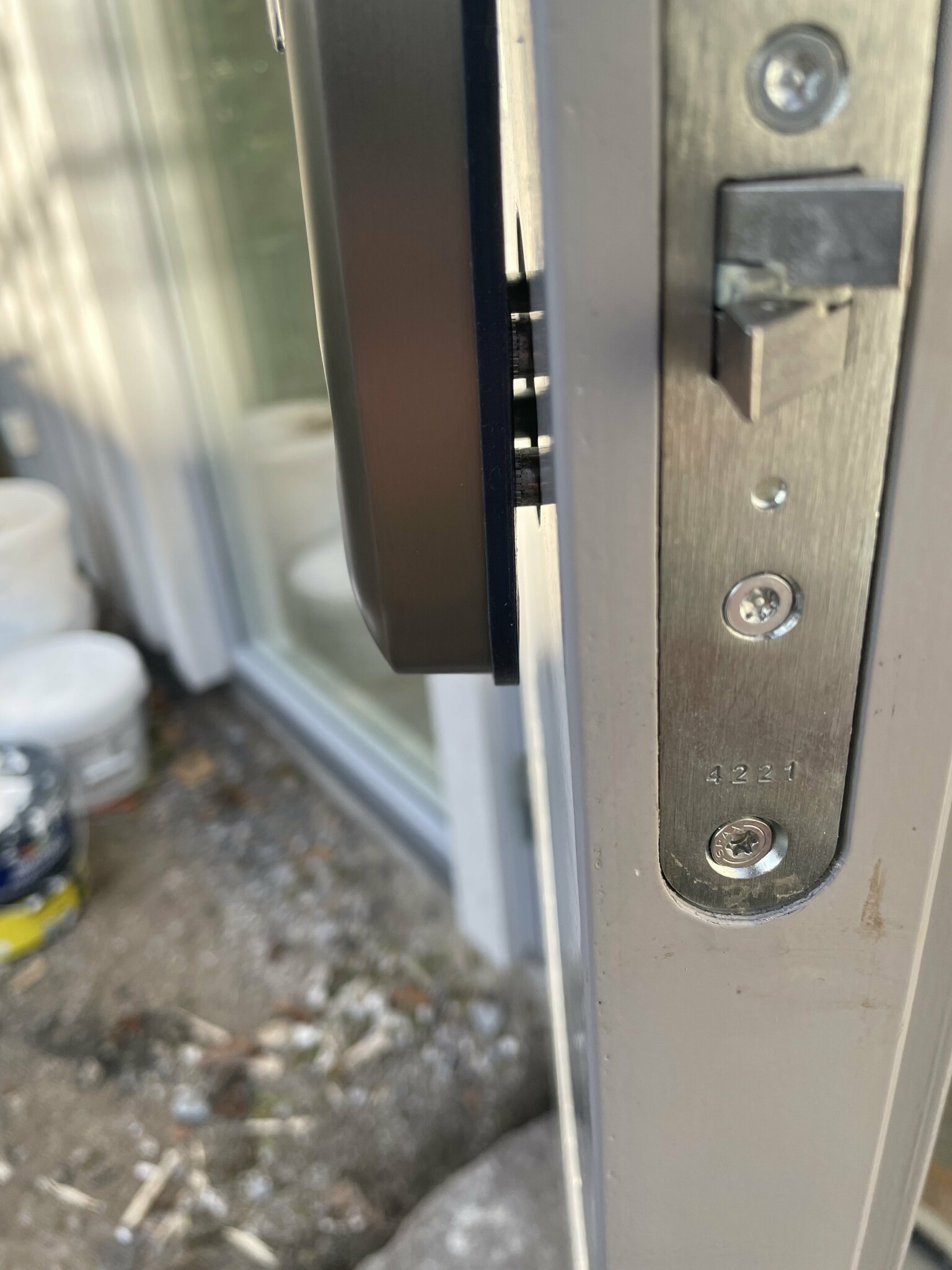 lade till en bild till utan gummilisten. Känns nästan som att låshuset ligger för nära utsidan på dörren, att låset inte går in tillräckligt långt?