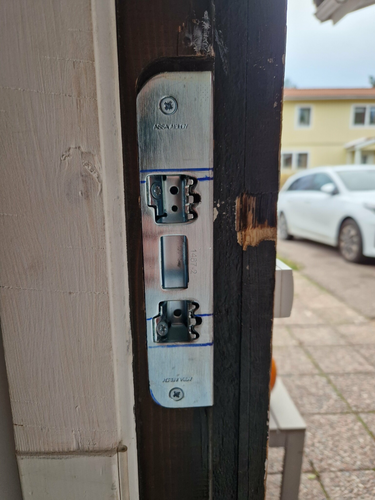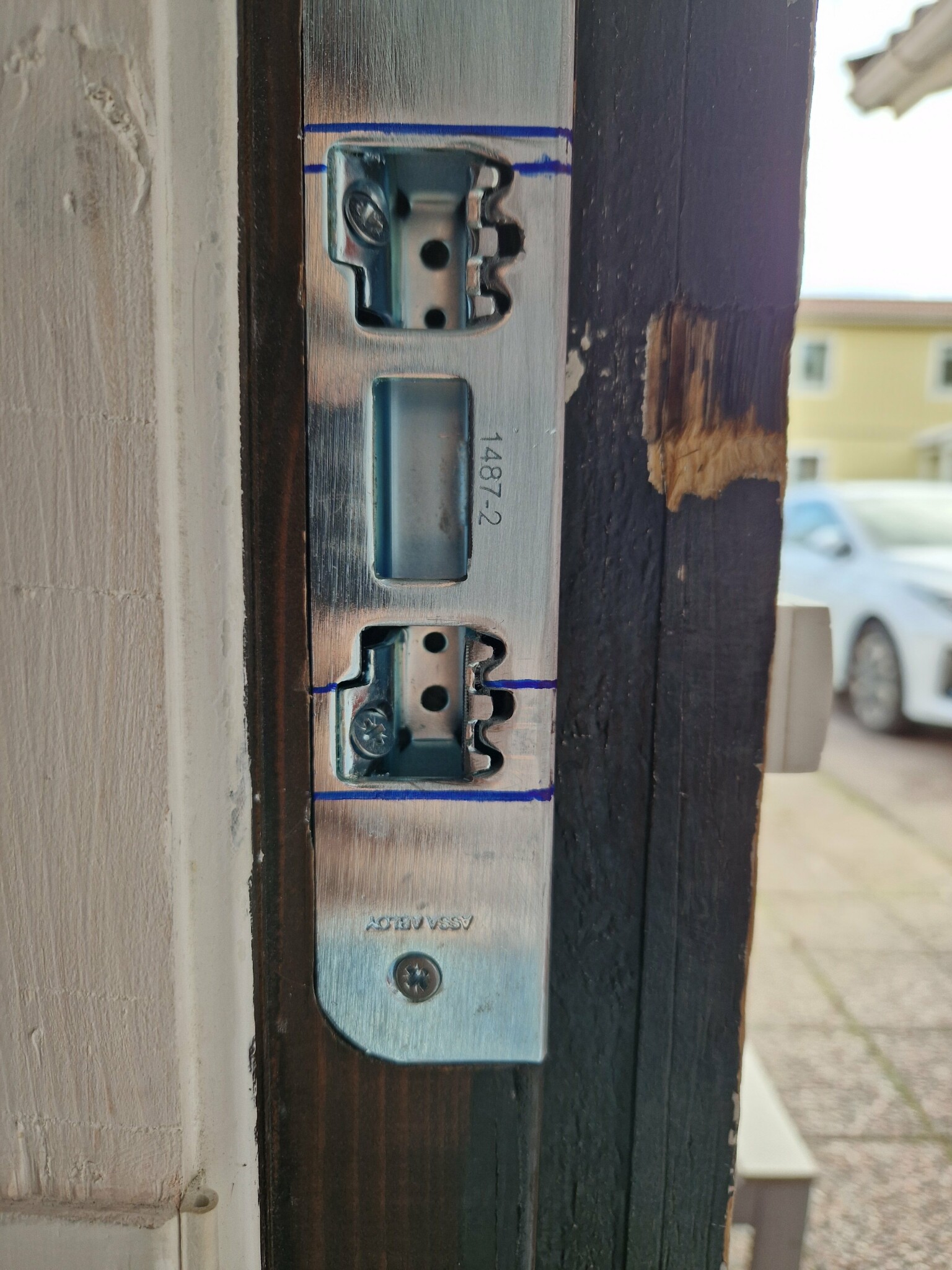 Tack för svar. Jag hann precis kapa slutblecket och ladda upp en uppdatering innan jag såg ditt inlägg 🙂1 123abc skrev:Det ser ut som om slutblecket sitter lite högt, hur långt är det från centrum av den övre fästskruven i låshusets stolpe till ovankant slutbleck?