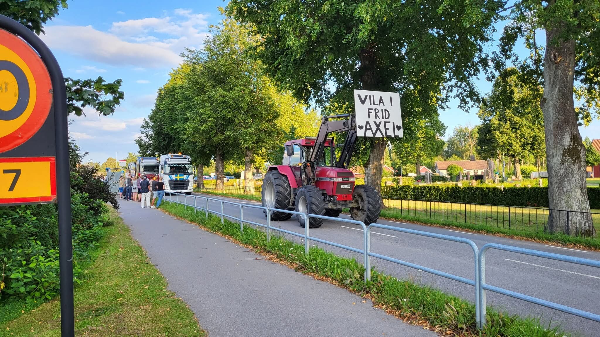 Axel, en 15-Ärig bondgrabb frÄn byn som avled i en arbetsplatsolycka för en vecka sedan hedrades idag med en kortege genom byn och in till Söderköping.