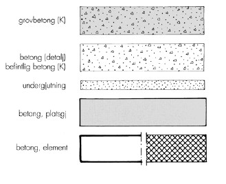 Hej! Jag som nyexaminerad byggingenjör försöker lära mig ritteknik inför mitt nya jobb. Skulle någon kunna förklara/visa hur ytmarkeringen ser ut för betong i konstruktionsritningar? Jag blir väldigt förvirrad då jag ser olika ytmarkeringar för betong hela tiden. Jag har för mig att det står i Bygghandlingar 90 men jag har inte råd att köpa dessa böcker och inte heller möjligheten att låna från biblioteket då någon annan redan har gjort det.