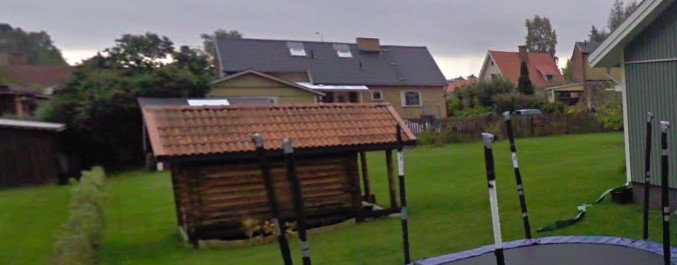 Delar med mig av lite bilder (de enda jag har). Hade tänkt att ersätta planket på mittersta bilden med thujahäck eller nåt annat vintergrönt. Takfönstren är borta, parabolen och de trasiga markiserna ska också väck.