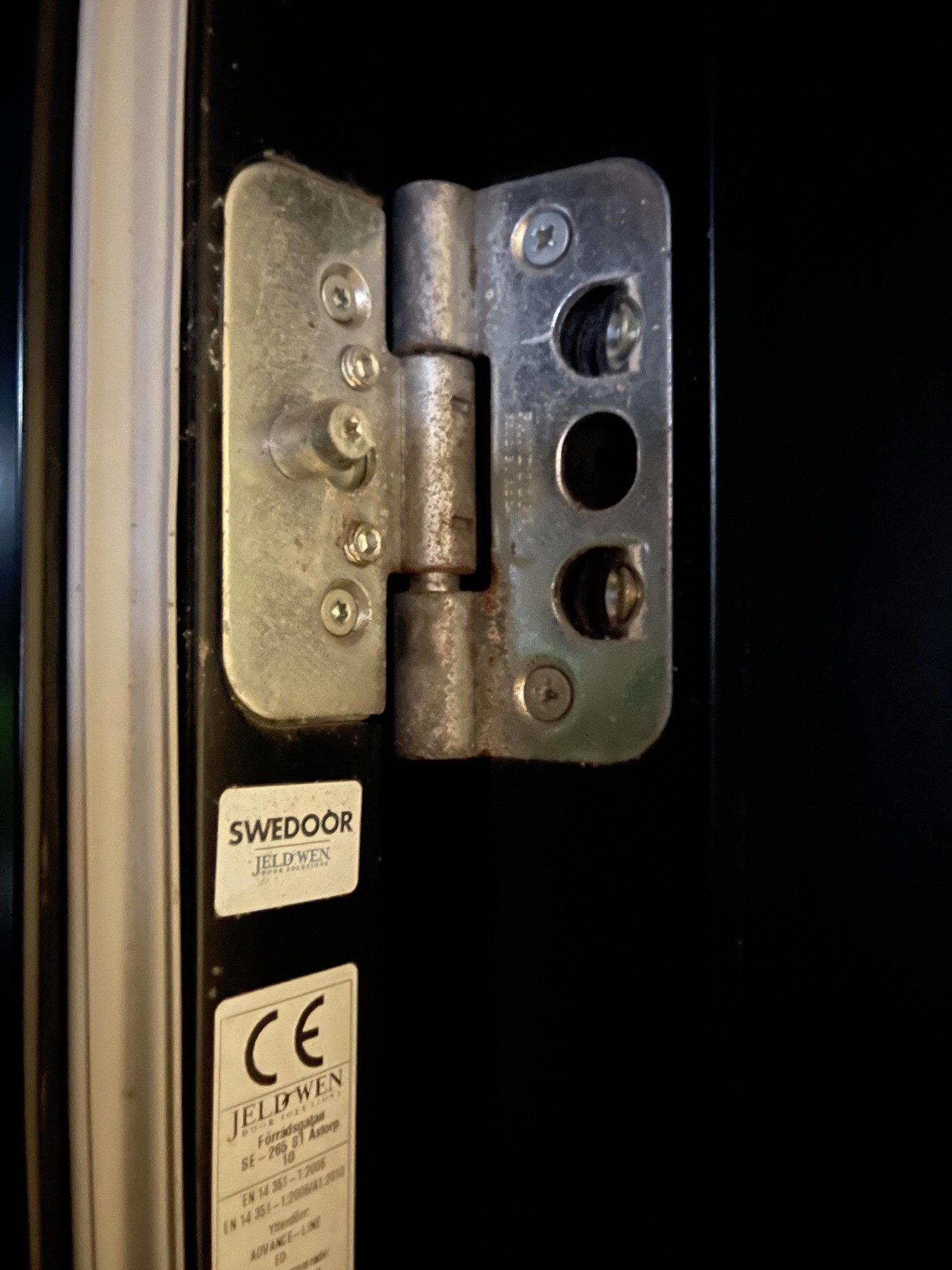 Har en ytterdörr som inte sluter tätt. På motsatt sida som gångjärnen sitter på känner man att det drar in mycket kall luft vid nedre kant på dörren.