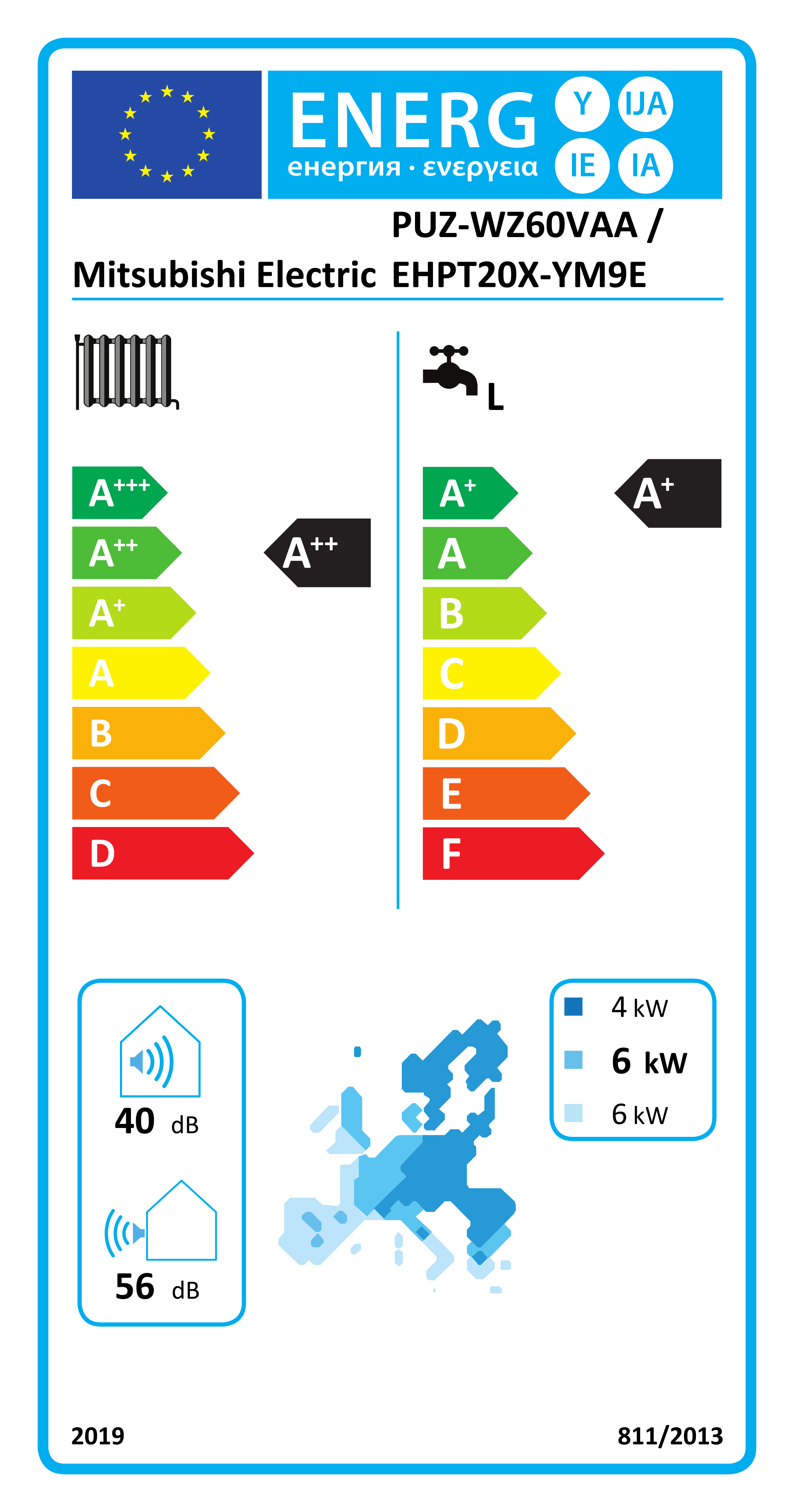 PUZ-WZ60VAA Ecodan har ett SCOP på 3,6 vid golvvärme och 2,9 vid radiatorvärme och ett Pdesign-värde (dimensionerad effekt) på 4,0 kW. PUZ-WZ60VAA lanserades år 2023.