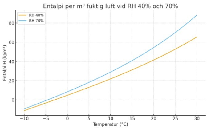 Robins svar är naturligtvis korrekt. Men det är inte bara temperaturdifferneser ute/inne som påverkar COP, dvs hur mycket VPn behöver lyfta temperaturen. Vid LVP gäller även att uteluftens fuktighet påverkar COP. Dvs vid hög luftfuktighet, oavsett lufttemperatur påverkas COP eftersom fuktig luft innehåller mer energi än torr. Jag gjorde ett enkelt diagram som visar skillnaderna. Jag bor kustnära i Skåne och drar nytta av detta.
